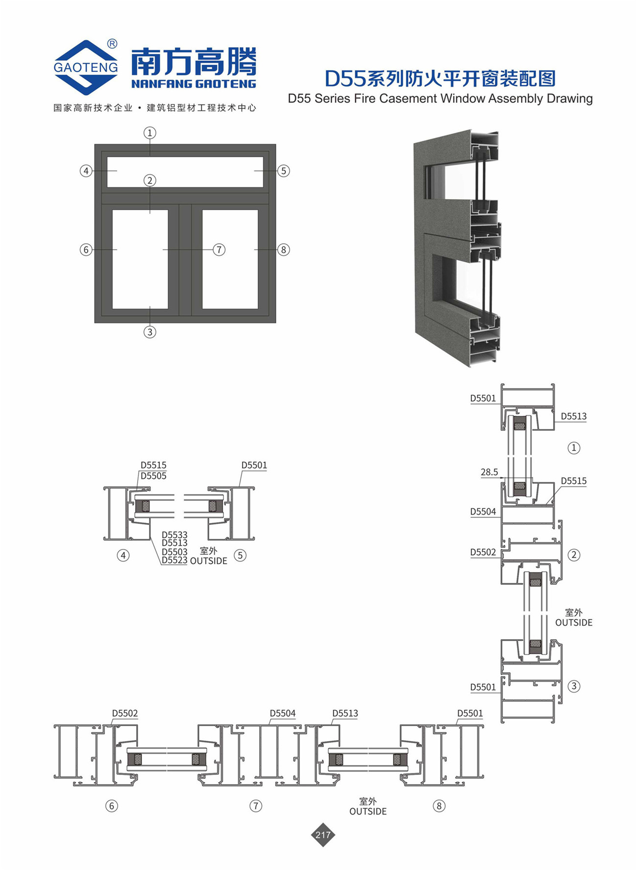 D55 series fireproof casement window